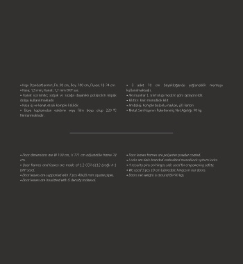 • Kapı Standartlarımız; En: 90 cm, Boy: 200 cm, Duvar: 18-24 cm • 3 adet 20 cm büyüklüğünde yağlanabilir menteşe